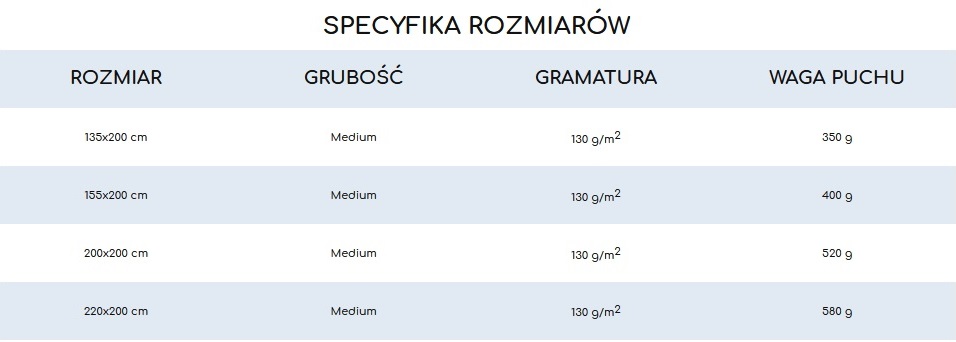 Kołdra puchowa antyalergiczna Medium - (130g/m2) – ciepła kołdra całoroczna