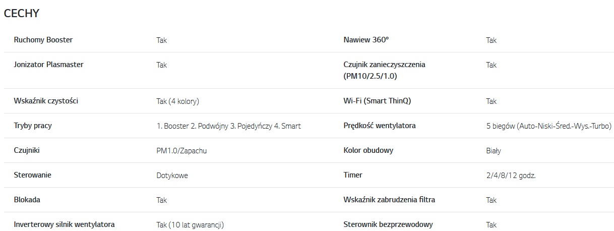 - LG ThinQ™ - Łatwy dostęp do funkcji sterowania oczyszczacza powietrza z dowolnego miejsca.