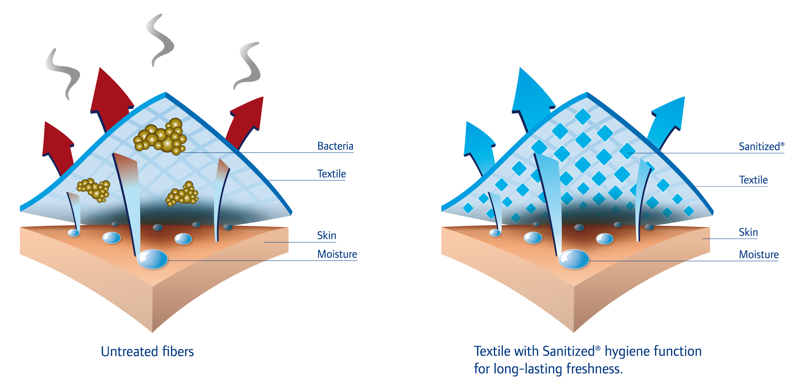 Sanitized® T 99-19 : destabilizuje ścianę komórkową i dezaktywuje bakterie. Sanitized® T 99-19 to jedyny produkt antybakteryjny na świecie, który został certyfikowany przez bluesign® i spełnia jego wymagania!