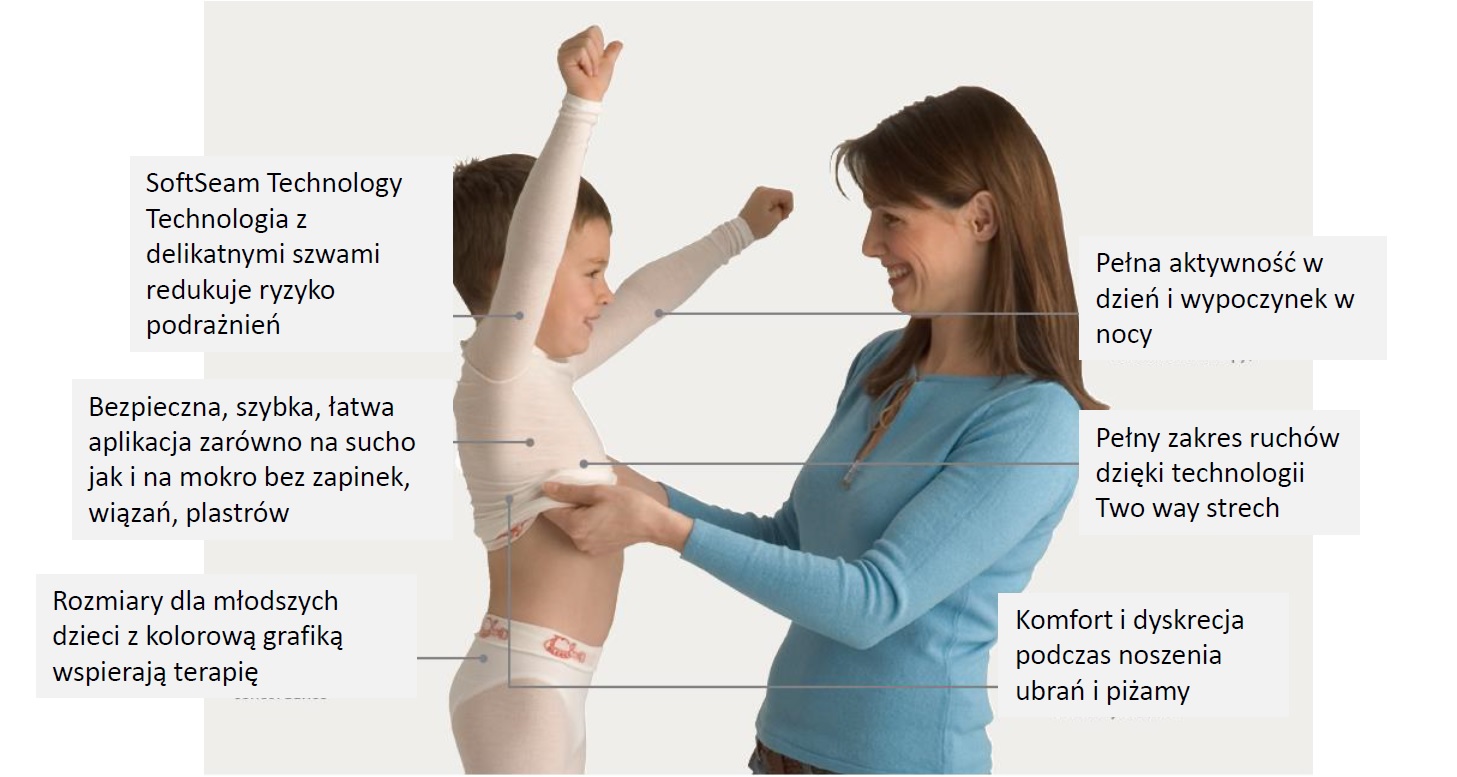 Odzież lecznicza Tubifast® Garments z technologią TwoWay Stretch® jest idealnie miękka, przewiewna, oddychąjąca. Delikatnie otula skórę, a jednocześnie skutecznie chroni przed drażniącymi działaniami z zewnątrz. Jej stosowanie przynosi ulgę, poprawia stan skóry i komfort codziennego życia.